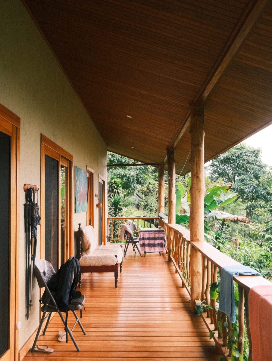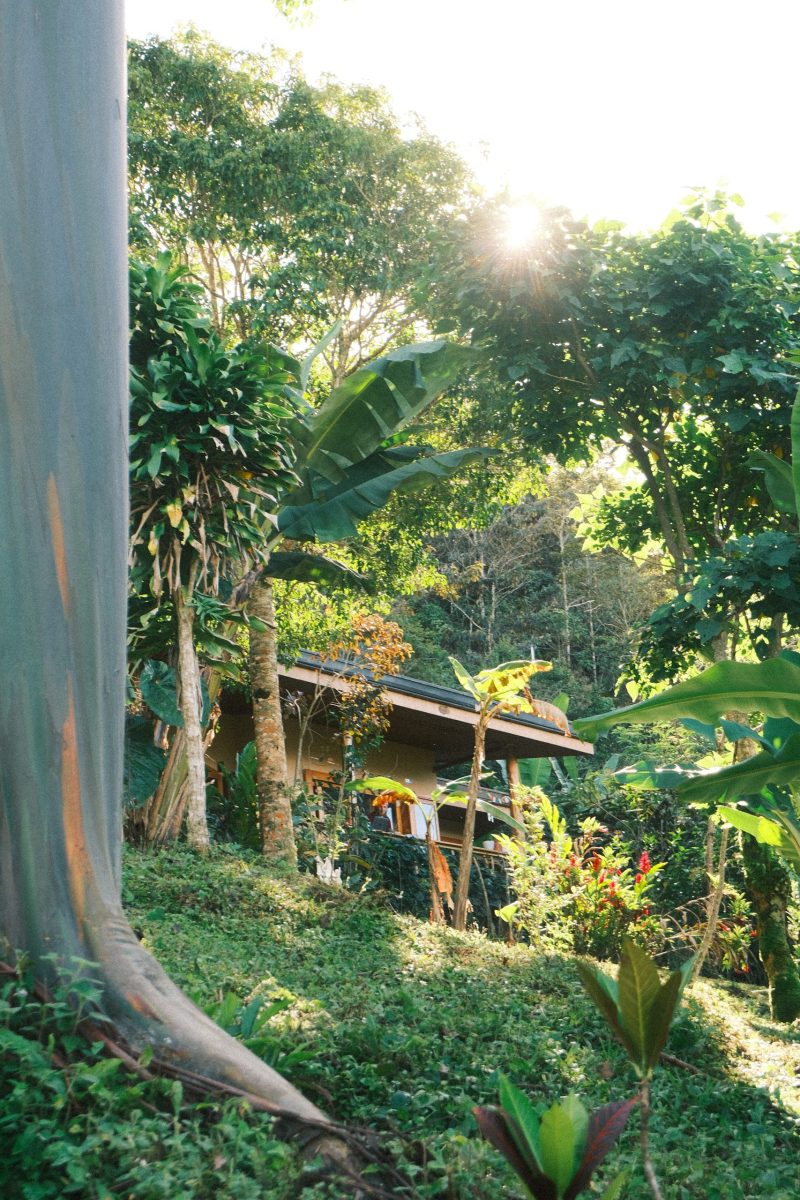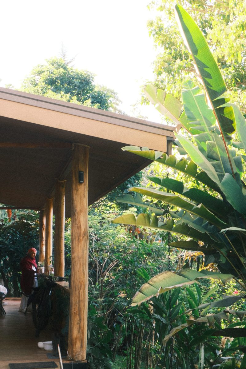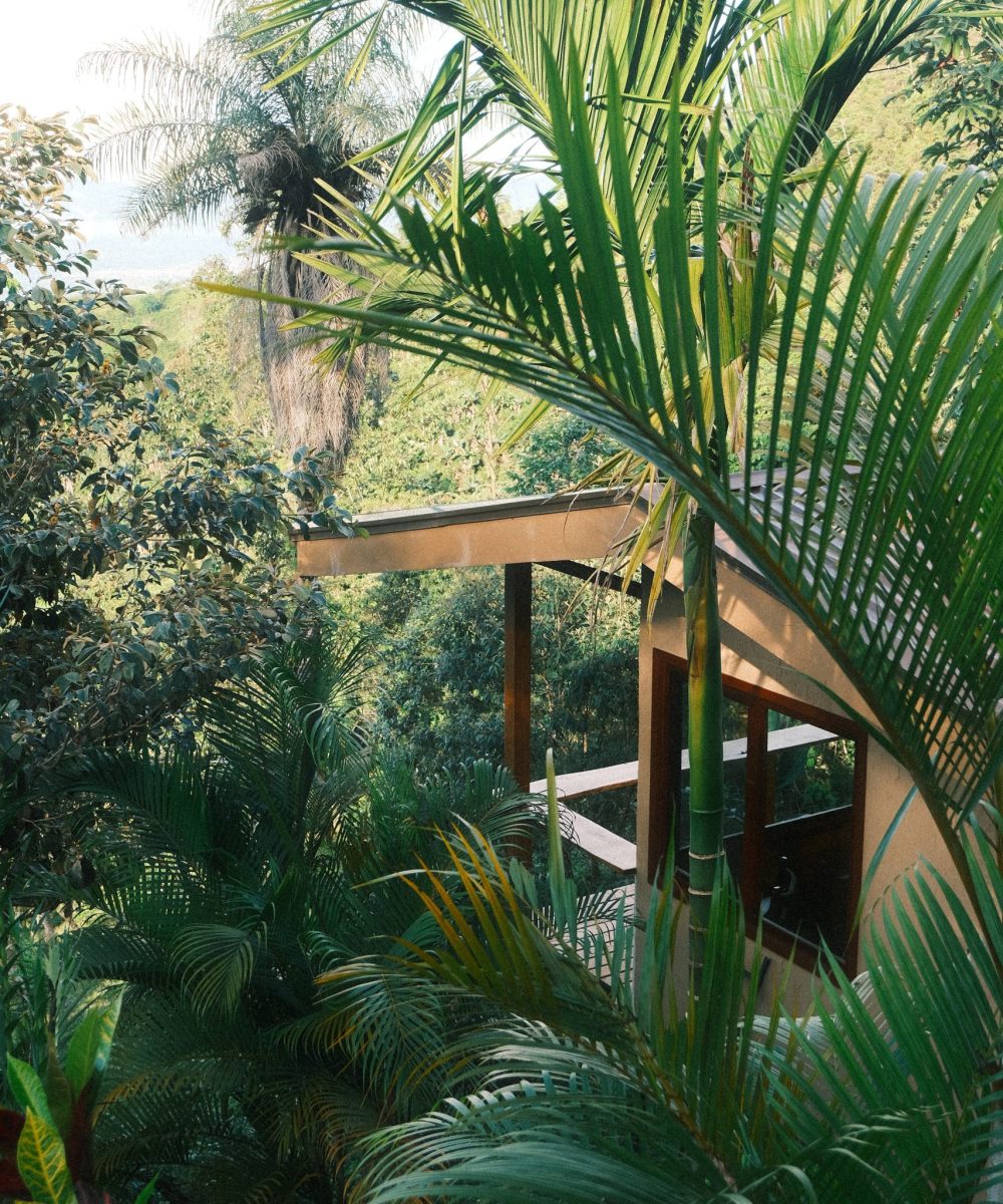 Tucked right into the jungle, this spacious house overlooks through our coffee plantations and gardens from beneath the tall cypress trees. The view is oriented not only to the south east mountain range, but also lets you sneak inside the life of the jungle. It´s location right on top of the hill will bring you the feeling of being nestled in a treetop house.